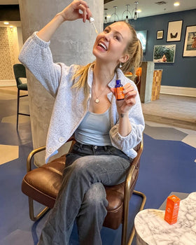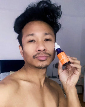 (98% Naturally Derived Content / 72% Organic Content) Ingredients: Aqua (Deionized Water), Sodium Ascorbyl Phosphate (Vitamin C), Hamamelis Virginiana Water, Cassia Angustifolia Seed Polysaccharide (Plant Based Hyaluronic Acid), Dimethyl Sulfone (MSM), Citrus Aurantium Dulcis (Orange Stem Cells) Callus Culture Extract, Tocopheryl Acetate (Vitamin E), Aloe Barbadensis Leaf (Organic Aloe) Extract, Panax Ginseng (Korean Ginseng) Root Extract, Ferulic Acid, Glycerin (Kosher, Vegetable), Simmondsia Chinensis (Organic Jojoba) Oil, Centella Asiatica (Organic Gotu Kola) Extract, Equisetum Arvense (Horsetail) Extract, Taraxacum Officinale (Dandelion) Extract, Geranium Maculatum (Wild Geranium) Extract, Arginine, Acrylates/C10-30 Alkyl Acrylate Crosspolymer, Phenoxyethanol, Ethylhexylglycerin, Citrus Sinensis Peel Oil (Sweet Orange).